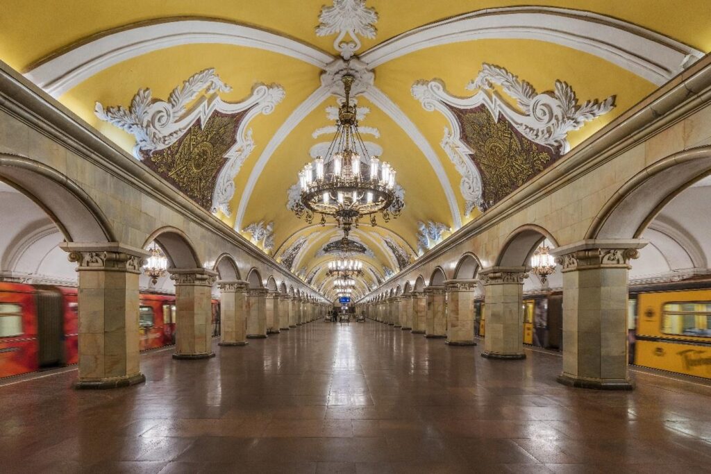 Komsomolskaja-Station der Metro in Moskau. Entstanden im Kommunismus, während Millionen Menschen an Hunger und Grausamkeiten starben. Ein Vergleich mit den prächtigen Kirchen des Mittelalters drängt sich auf.